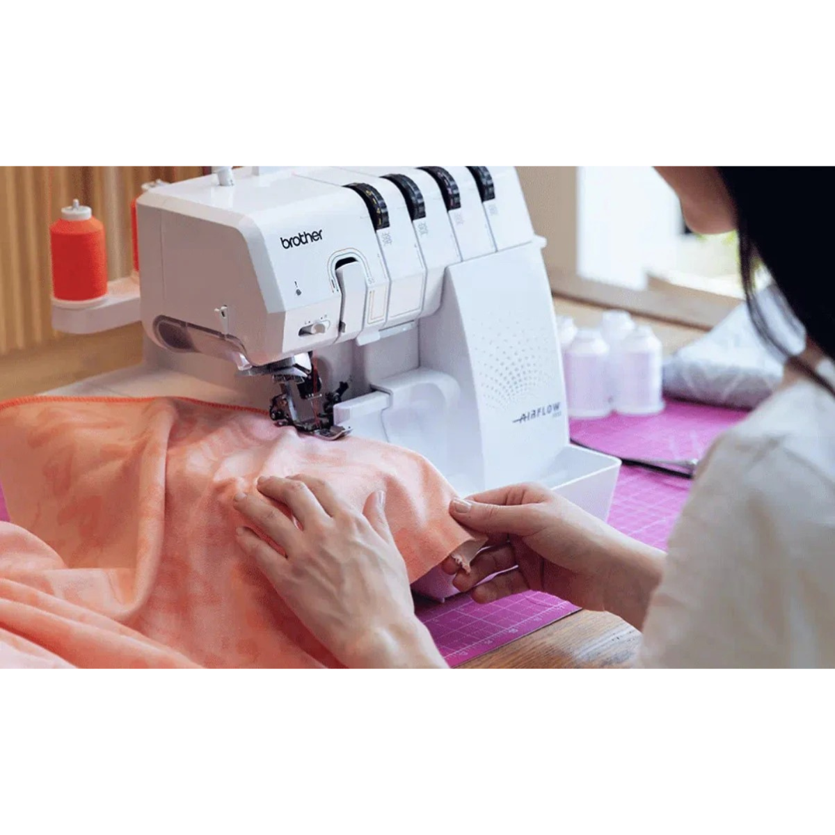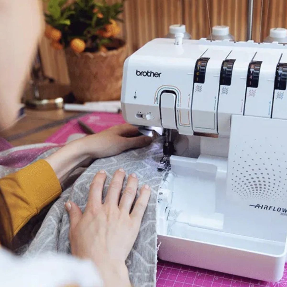 Simplifiez-vous la vie avec la nouvelle surjeteuse BROTHER AIRFLOW 3000 équipée d’un système automatique d’enfilage à air ultra facile à utiliser, d’un système perfectionné d’enfilage des aiguilles, de leviers d'activation/désactivation et d’une vitesse de couture pouvant atteindre 1.300 points/minute.